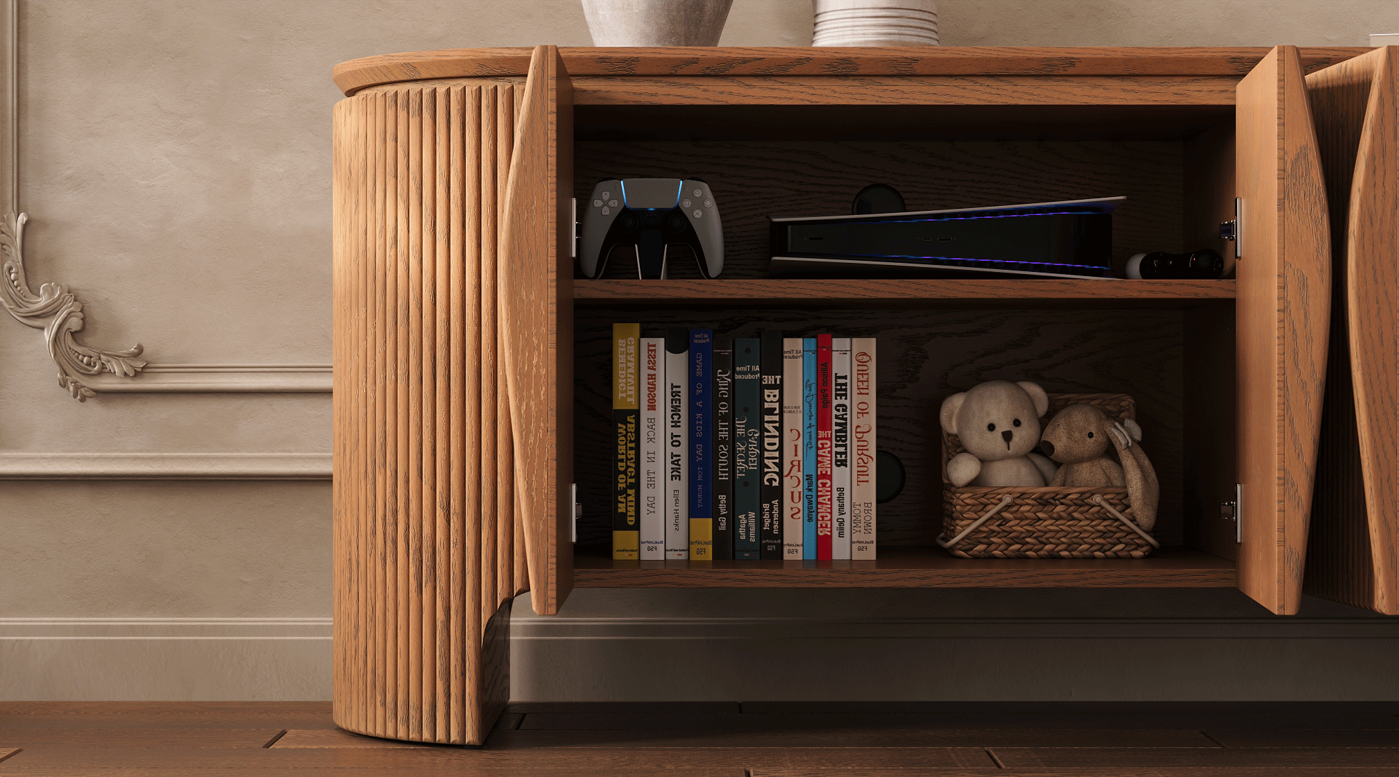 The Sylvan Series unifies your space with matching walnut pieces. From the TV stand to the coffee and side tables, each design carries the same serene rhythm in tone, detail, and form.
